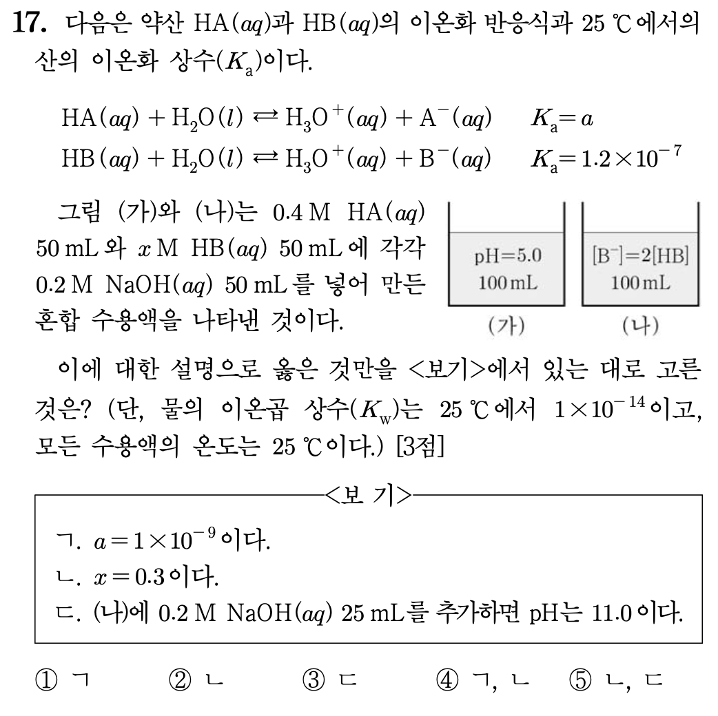 2020학년도 화학2 수능기출풀이 17번[3점] 본문